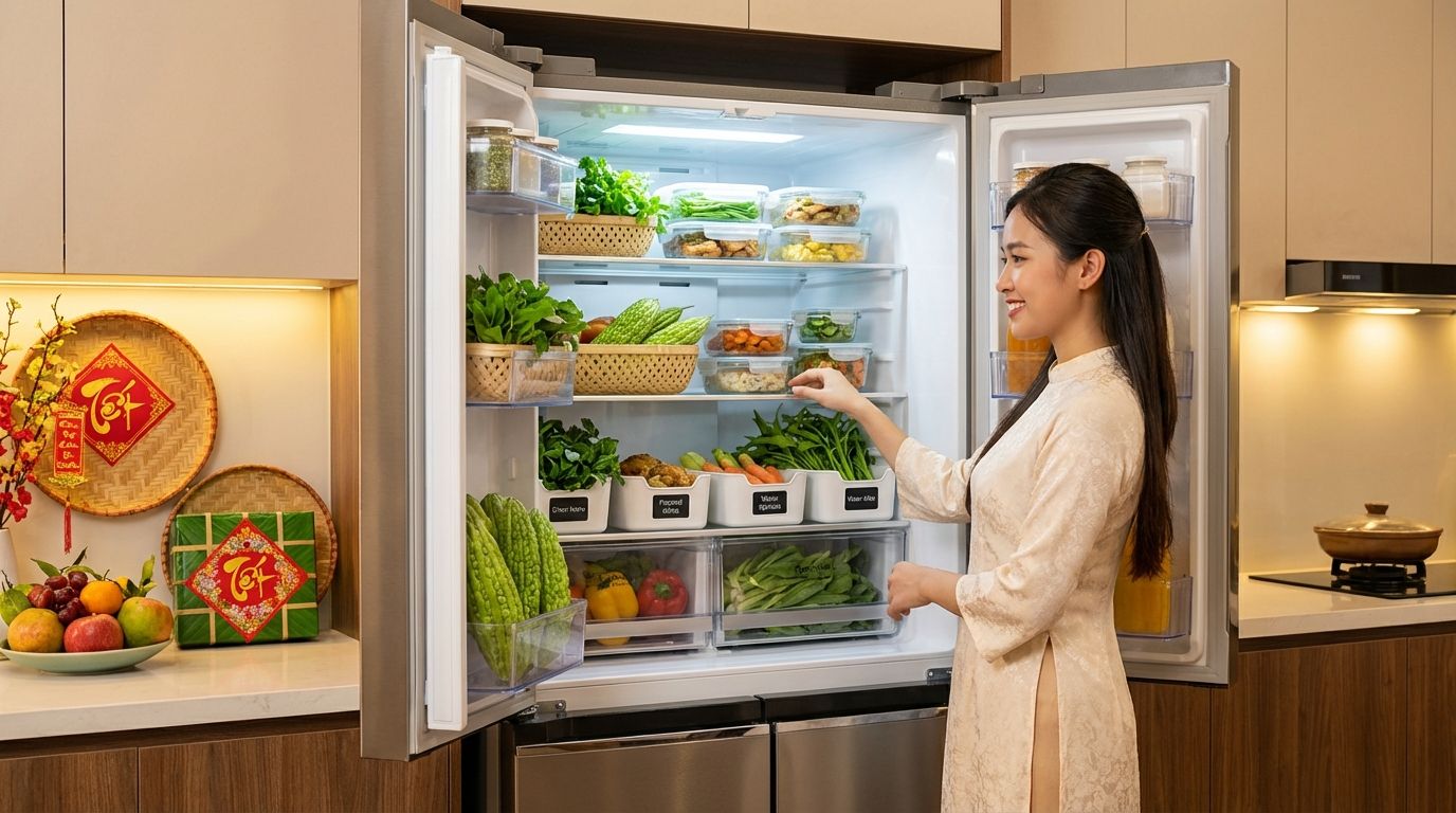 7 nguyên tắc vàng giúp bảo quản thực phẩm Tết trong tủ lạnh an toàn, tươi ngon suốt 7 ngày. Phân vùng đúng cách, nhiệt độ phù hợp, tránh lãng phí.