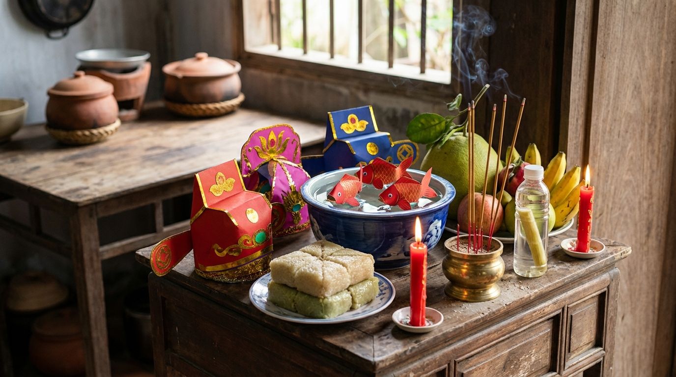 Hướng dẫn chuẩn bị mâm cúng ông Công ông Táo ngày 23/12 âm lịch. Lễ vật gồm gì, giờ cúng khi nào, và cách dọn dẹp bếp sạch sẽ để ông Táo về trời báo cáo tốt đẹp.