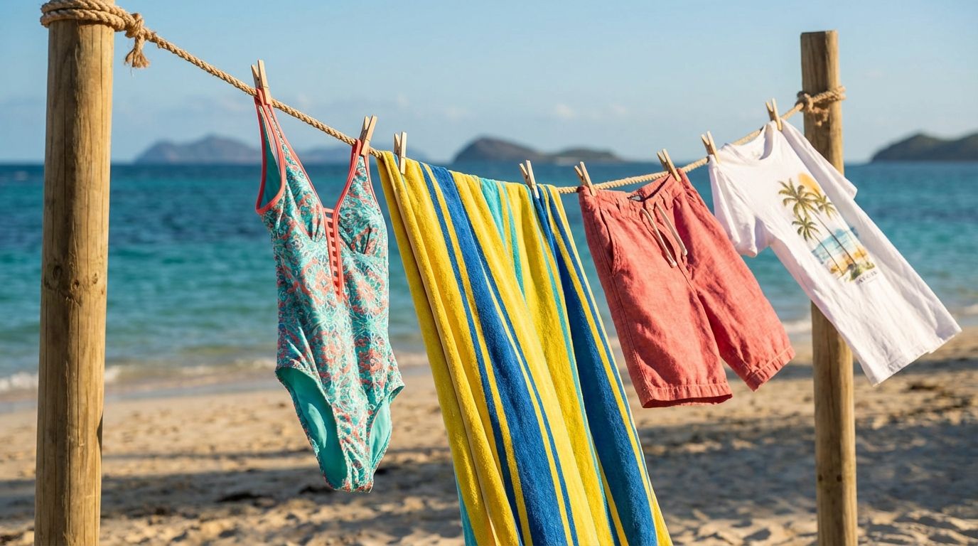 Đồ đi biển phai màu, cứng đơ sau một chuyến đi là do muối biển và clo hồ bơi âm thầm phá vải. Hướng dẫn giặt đúng 3 loại đồ biển (quần áo, khăn tắm, áo phao) để giữ đồ bền đẹp từ chuyến này sang chuyến khác.