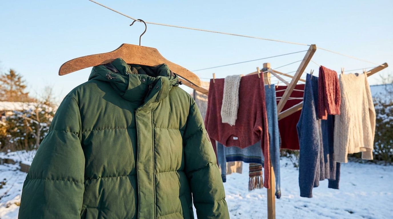 5 mẹo phơi đồ mùa đông nhanh khô không hôi: móc vai rộng, lộn trái, cách nhau 15cm, phơi phẳng áo len, và quạt đúng cách. Ai cũng làm được, không cần máy sấy.
